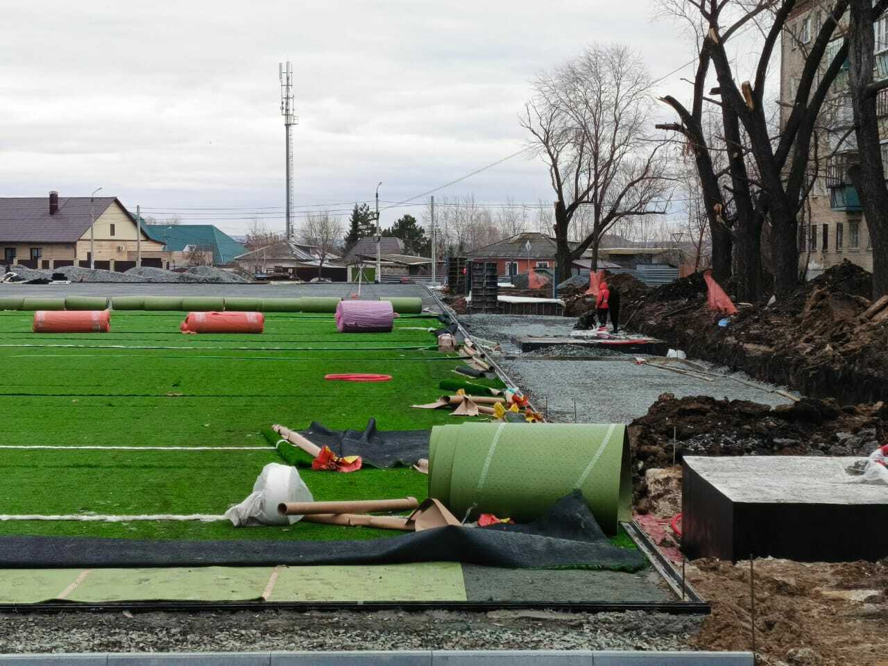 На данной территории происходит организация стадиона для регби в границах ул. Новороссийская, пер. Каслинского, ул. Василевского, ул. Машиностроителей в Ленинском районе г. Челябинска"